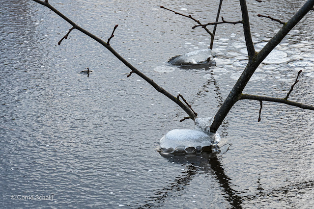 En zijn daarna de takken wat omhoog gekomen, of is het ijs c.q. water gezakt?